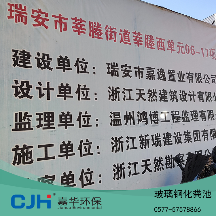 溫州嘉華環保成功入駐:瑞安市莘塍街道莘塍西單元06-17地塊項目室外景觀、小市政工程溫州-瑞安 玻璃鋼化糞池75立方公司熱線:15...
